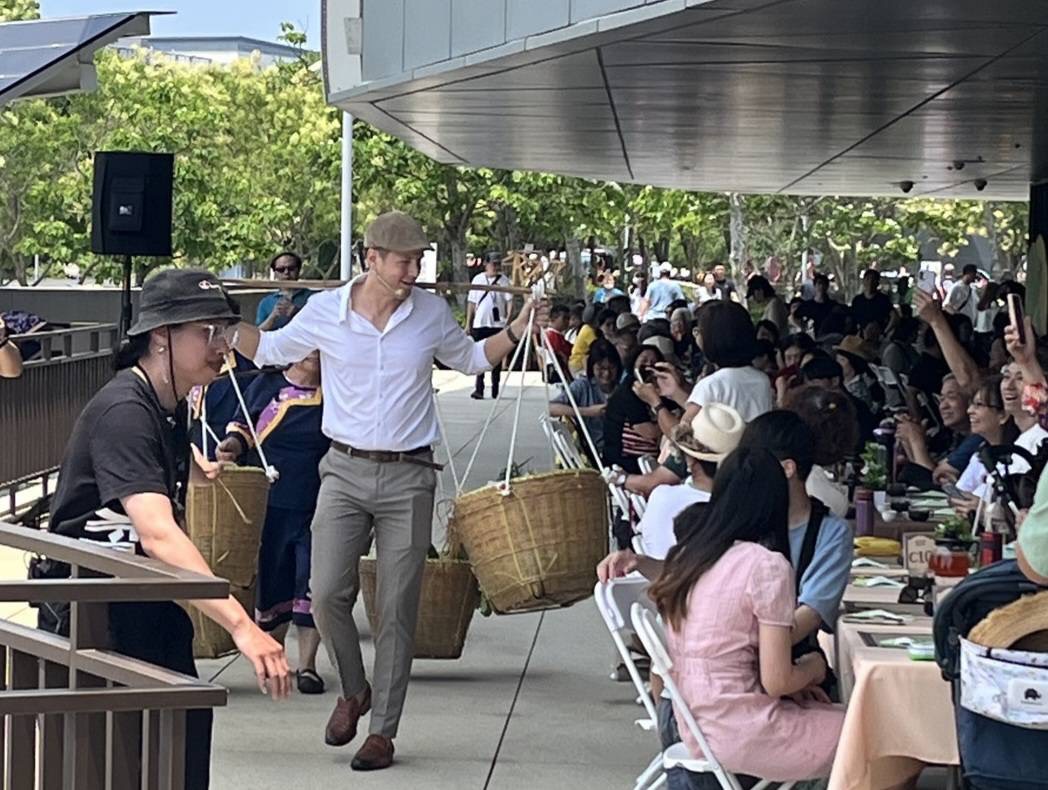 除了味覺體驗外,桐花宴亦規劃跨族群音樂演出,邀請賈斯汀演唱客家歌曲,並由原住民、閩南與客家歌手接力演出,從多元文化視角詮釋客家音樂之美,打造一場融合飲食、音樂與語言文化的五感饗宴。活動同時吸引在臺港人組團30人參與,共同感受這場別具特色的「時空尋味-桐花宴」。