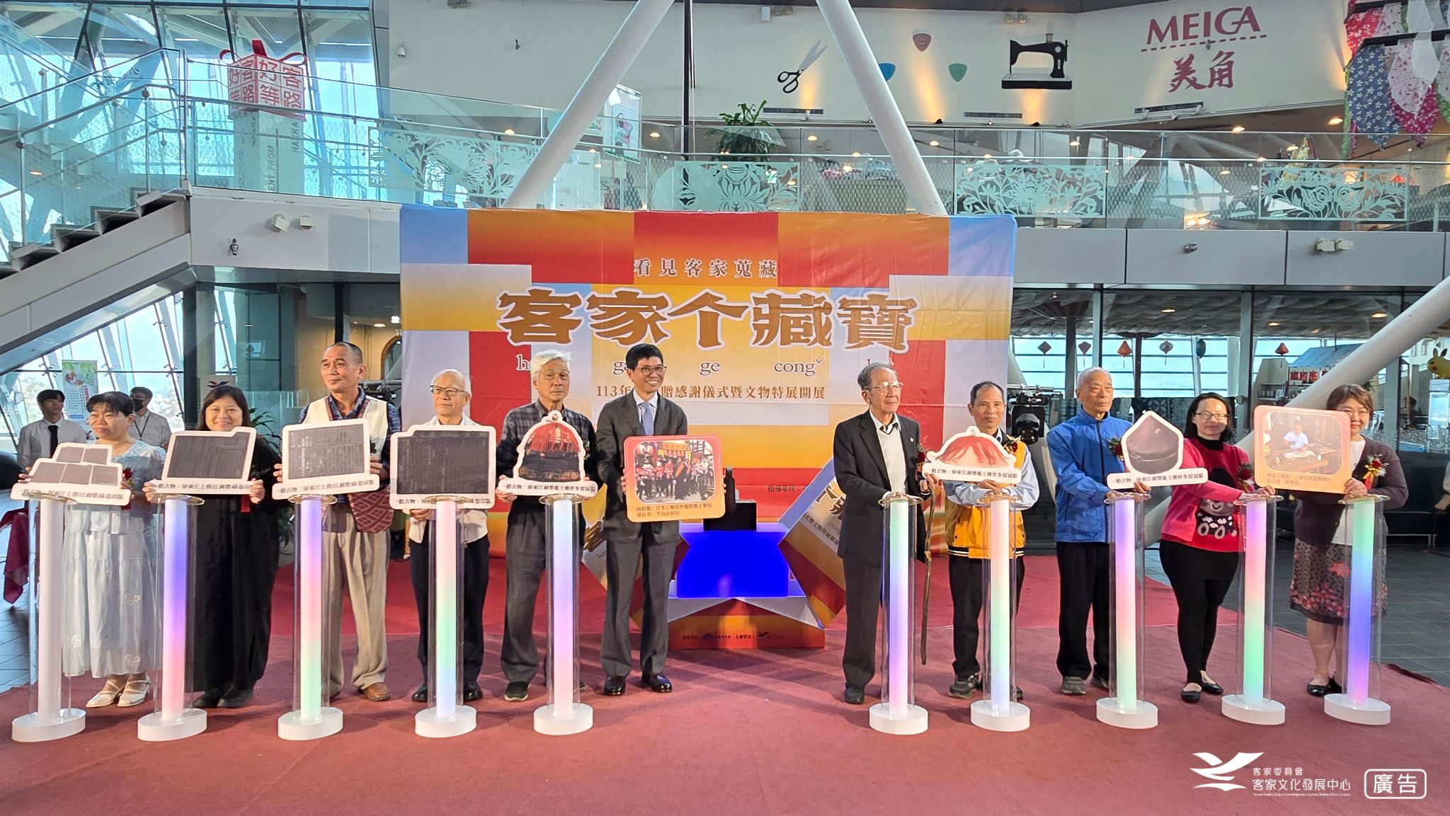 The Taiwan Hakka Culture Development Center of the Hakka Affairs Council held the “Hakka Hidden Treasures: 2024 Donated Artifacts Special Exhibition and Appreciation Ceremony” today (the 12th) at the Taiwan Hakka Museum. Through a formal donor appreciation ceremony and the exhibition’s grand opening, the event not only showcased the Center’s achievements in collecting and preserving Hakka cultural artifacts but also expressed the Center’s deepest gratitude to the many members of the Hakka community who generously contributed the items. These valuable donations have significantly enriched the Center’s collections and will serve as an essential foundation for future exhibitions, educational outreach initiatives, and innovative reuse and revitalization efforts.