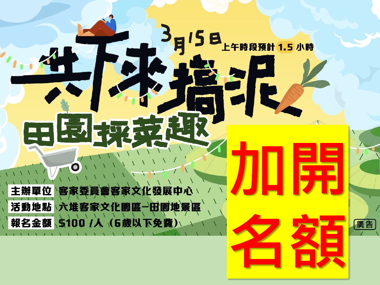 活動已結束【少量名額加開】115年3月15日農事學堂-共下來搞泥【田園採菜趣】